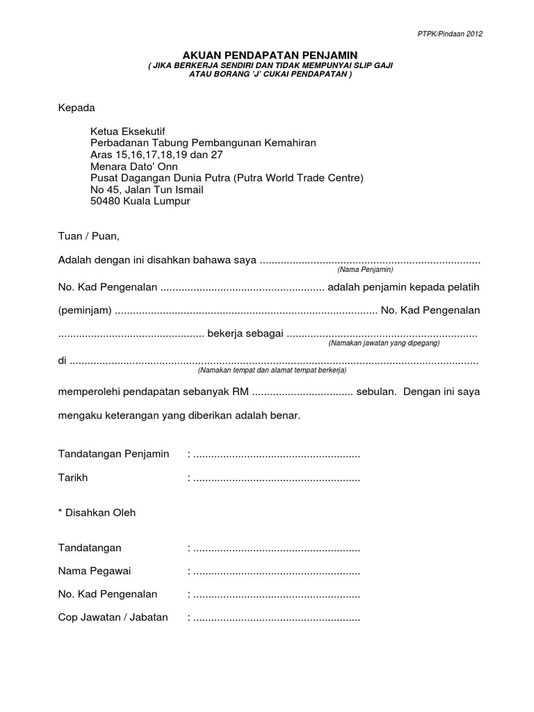 Borang Akuan Pendapatan Penjamin Pdf