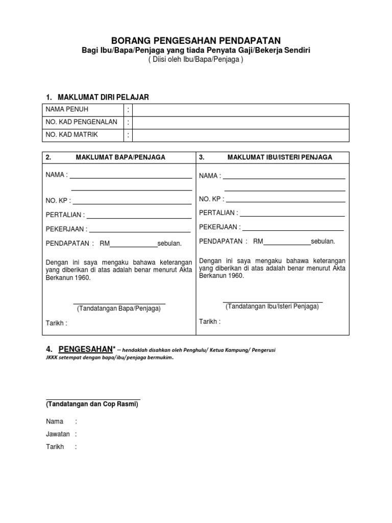 Borang Pengesahan Pendapatan1 Pdf